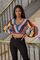 Multi Color long puff sleeve top with deep “V” neckline. This is a cute top to wear to brunch, on vacation or a nice day event.